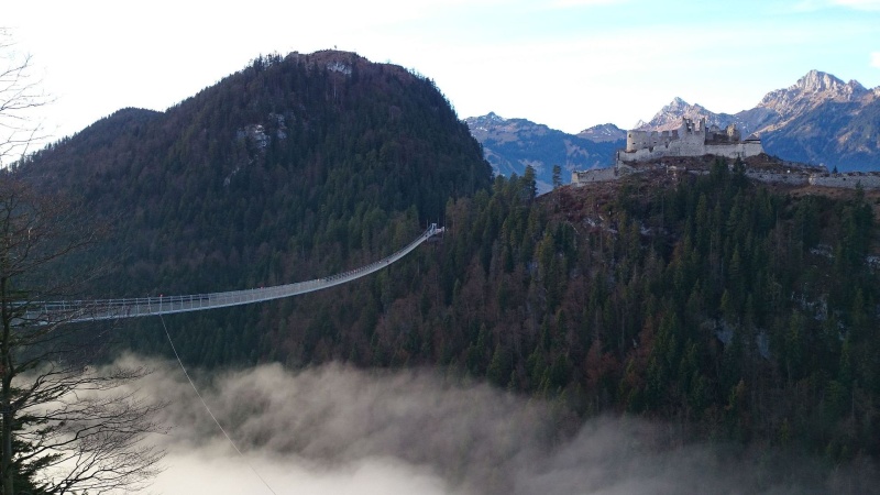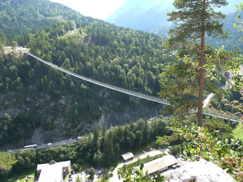 The highline179 is a pedestrian suspension bridge over the Fernpassstraße B 179 south of Reutte in Tyrol (Austria). It extends at an altitude of 114 meters above the castle Ehrenberg and combines the ruins of Ehrenberg with the Fort Claudia. The location of the bridge was chosen that at the date of completion it is one of the longest pedestrian suspension bridges in the world with a span of 403 m. It serves not only the ease of visiting the two castle ruins, but is primarily intended to be an independent tourist attraction for the town Reutte.