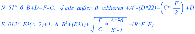 Folge dem darüber liegenden Pfeil für ca. (A+B+C+D)*B Meter.