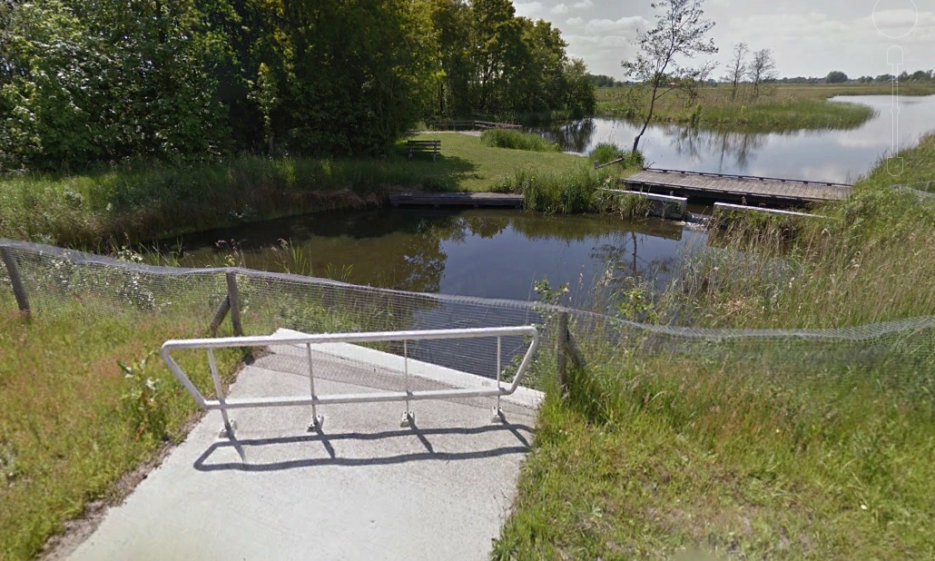 Als u vanaf de parkeerplaats het graspad volgt dan kunt u hier en daar vissers tegen komen die bij de steiger hun hengeltje hebben uitgeworpen. Uiteindelijk lijkt het pad dood te lopen maar er is nog een mogelijkheid om verder te gaan. U bent dan wel aangewezen op de regels die in dat gebied gelden. Deze regels worden aangegeven in de overgang van bos naar weiland.