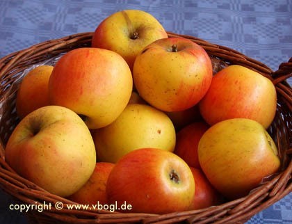 Abstammung, Herkunft Zufallssämling, Herkunft unbekannt vermutlich in Württemberg entstanden, dort seit 1885 verbreitet Beschreibung mittel bis groß, breit gebaut Deckfarbe fast flächig rot gestreift oder marmoriert Geschmack hauptsächlich Wirtschaftssorte, auch Tafelapfel sehr saftig, knackig und erfrischend, aber wenig Aroma Reife, Lagerung Mitte bis Ende Oktober bis März haltbar Baum, Wuchs mittel bis stark, Krone rundlich und dicht verzweigt, dadurch schlecht belichtet Eigenschaften oft Spitzendürre durch Holzfrost, Triebschorf, Gloeosporium und Krebs trotz dieser Mängel eine langlebige Sorte spät und lang blühend, als Befruchter geeignet Bemerkungen anspruchslos an den Standort, warme Lagen werden aber bevorzugt zur Saftherstellung, zum Backen und als Tafelapfel gut geeignet