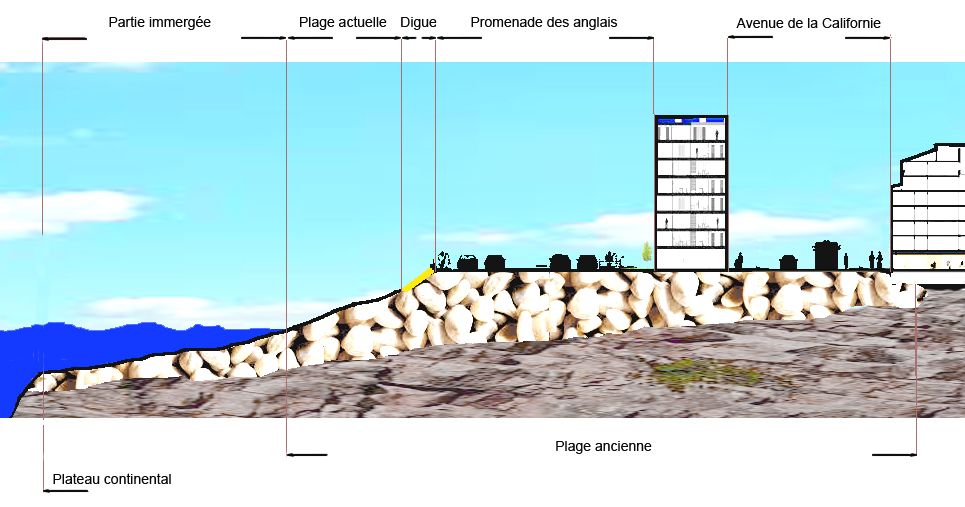 A partir des années 60, la plage de Nice a été exposée à ces phénomènes érosifs liés à la diminution des apports solides et à la construction de nombreuses infrastructures côtières