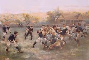 V 40. letech 19. století Anglii zasáhl boom železniční dopravy. Tento technologický rozvoj umožnil pořádání soutěžních zápasů mezi jednotlivými školami. Avšak zatímco rozdíly v místních pravidlech atletiky byly nevýznamné, mezi školní zápasy ve fotbale byly kvůli zásadním rozdílům v pojetí hry prakticky nemožné. Proto se v roce 1848 sešlo 14 zástupců škol na jednání, jehož výsledkem byla první ucelená sada pravidel, tzv. Cambridgeská pravidla. Tato pravidla upřednostňovala kopání, bylo však dovoleno také čisté zachycení míče rukama.