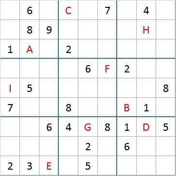 Ratkaise sudoku ja sijoita kirjainten paikalle numerot yllä olevaan kaavaan. Käytä tässä ratkaistuja numeroita kätköille HVU #38 - HVU #49.