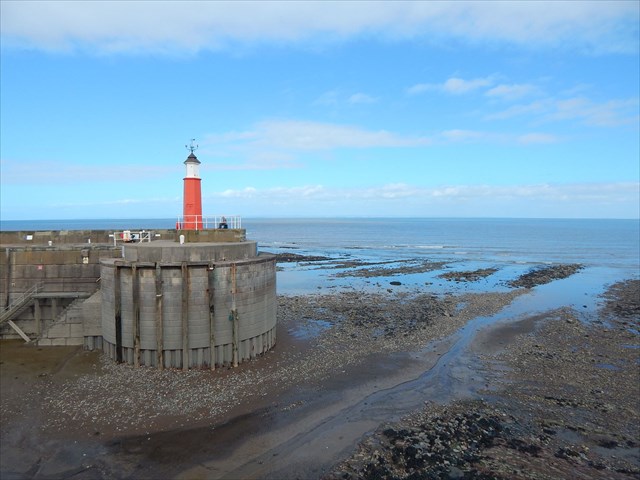 The cliffs and foreshore below you, show seaward-dipping Triassic marls and siltstones and are being rapidly worn away/eroded b weathering and action from the sea. A footpath on the clifftop leads eastwards to steps down to the foreshore where the East-West trending Doniford Bay Fault may be viewed. There are many cracks in the layers of rock in the cliff face between the steps and the harbour.