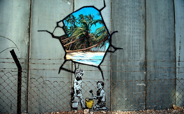 Banksy est le pseudonyme d'un artiste connu pour son art urbain et également comme peintre et réalisateur. Dissimulant sa véritable identité, Banksy est entouré de mystère. Des spéculations sont faites, fondées sur des images prises par des caméras de vidéosurveillance ; il serait originaire des environs de Stoke au Royaume-Uni, serait né en 1974 et se nommerait Robert Banks, ou encore Robin Gunningham4.