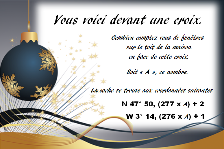 Nous répondons une nouvelle fois présent pour vous accompagner durant ce mois de décembre avec une série de caches disséminées dans les communes aux alentours de Lorient.