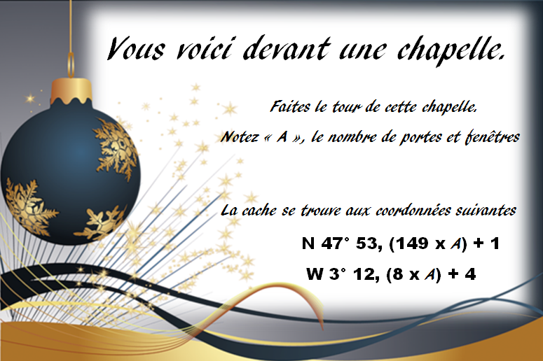 Nous répondons une nouvelle fois présent pour vous accompagner durant ce mois de décembre avec une série de caches disséminées dans les communes aux alentours de Lorient.