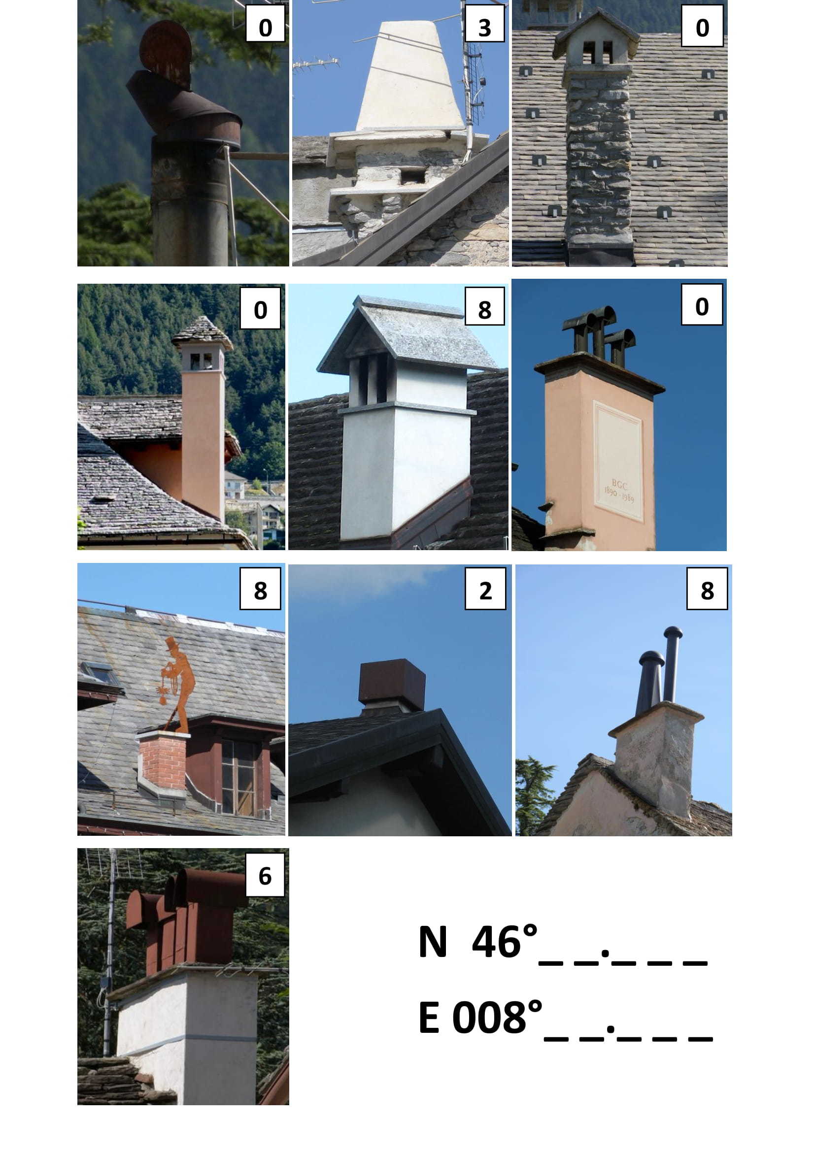 Il WP1 è il parcheggio ed il luogo di partenza. Lungo il percorso all'interno del paese, determina l'ordine cronologico con cui si presentano i camini riprodotti. Se avrai fatto tutto senza errori, otterrai le coordinate finali per il Cache.