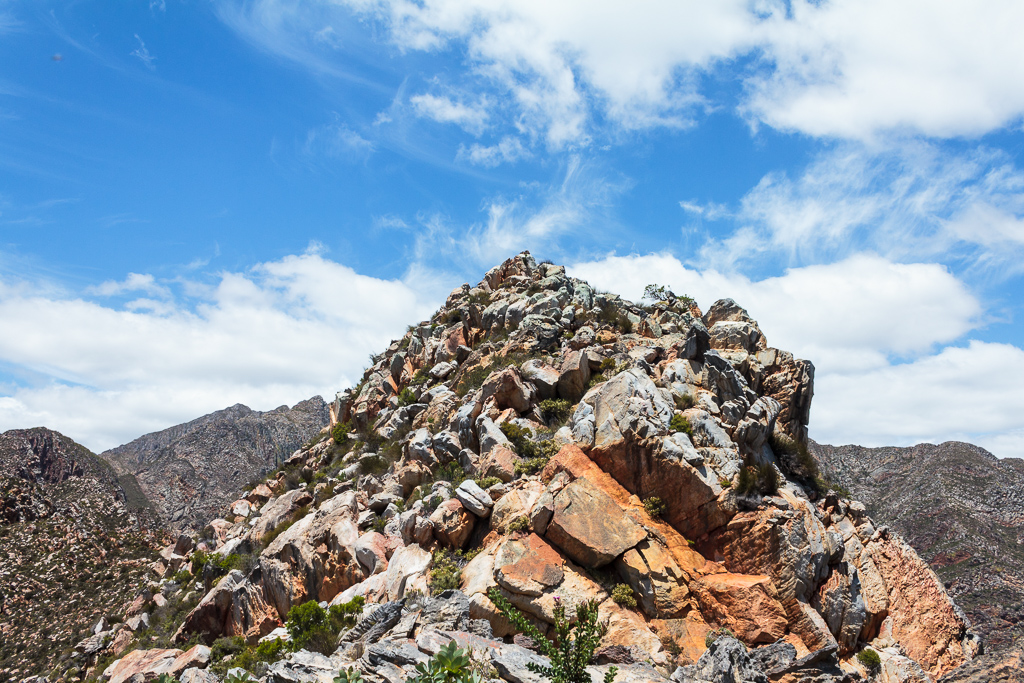 From this little peak you have a nice view down Keurkloof. Getting to the top of it though is not as easy as it looks. Stay away from the cliffs on the right. Rather go around to the left and approach from the other side.