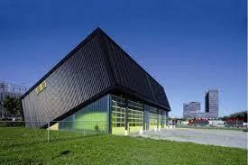 (NL) Dit gebouw is in Almere bekend als "de Stofzuiger": een gebouw uit twee delen. Een rechte doos ligt onder een deksel dat schuin uit de grond omhoog komt. Gele ramen en deuren contrasteren met de donkere omhulling. Het oplopende gebaar van het bouwwerk symboliseert de functie die het herbergt: hier wordt via een uitgebreid ondergronds buizenstelsel alle vuilnis uit de binnenstad van Almere opgezogen.