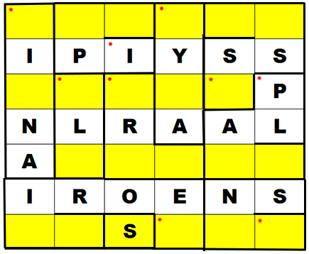 Ledtrådarna står i slumpmässig ordning. Skriv de efterlysta orden på lämpliga ställen med hjälp av de bokstäver som redan är ifyllda. Varje ord ska börja i en ruta markerad med en prick och sedan följa de grövre linjerna. De färgade rutorna utgör lösningen.