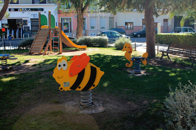 Una fuente en el centro de la plaza, bancos y zonas infantiles forman la fisonomía de esta bonita plaza.
