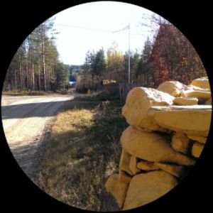 Veien du har kjørt på for å komme hit er egentlig ganske unik, da du på et stykke faktisk kjører midt i grensegata. (Stykket mellom cachen og riksrøysa)