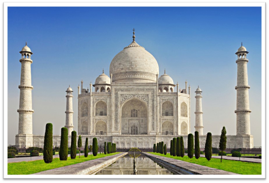 F – Identification: Le Taj Mahal (ताज महल) est un mausolée situé à Agra – Inde (भारत), et c’est le monument plus célèbre et emblématique du pays. L’Organisation des Nations Unies pour l’Éducation, la Science et la Culture/United Nations Educational, Scientific and Cultural Organization (UNESCO) le classifié comme patrimoine mondial en 1983. En 2007, il a été nommé comme l'un des sept merveilles du monde pour New7Wonders of the World.