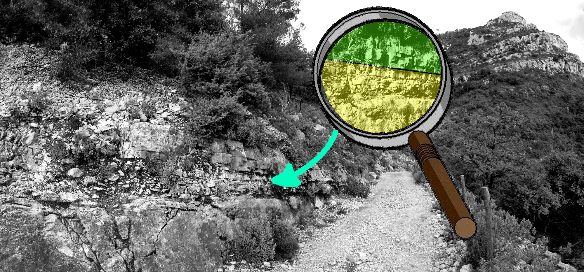 This movement towards -45 Ma will create the uplift 'of the Alps and the Mercantour. These sediments will be dewatered "(said of a land that was flooded and discovered. (To -20 Ma) and under the effect of the slope and the clay layer deposited during the Triassic will slide slowly to the south. This movement of the order of 1 to 2 mm per year will cover the fi ne by land Miocene (-23 Ma).