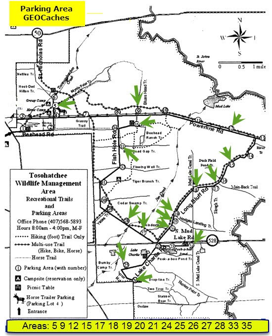 This series will take you all around the Tosohatchee WMA. I created this series just to showcase this beautiful area. The roads are all dirt, when the caches were put out the roads were in great shape, some a little bumpy, but that was it. The entrance is at the main gate off Taylor Creek Road (N28 29.900 W80 59.921). There is a charge per car unless you are 65 or older, then it is free. The gate opens at 8:00am and closes at sunset. There are a lot of rural GEOcaches in Tosohatchee of all varieties. Many are right off the many trails and grass roads that crisscross the WMA. The orange blazed Florida Trail runs right through the Tosohatchee. There are a couple of camping areas. To reserve a spot or for any information give the office a call at 407-568-5893, they are very helpful. Maps maybe available at the signin area.