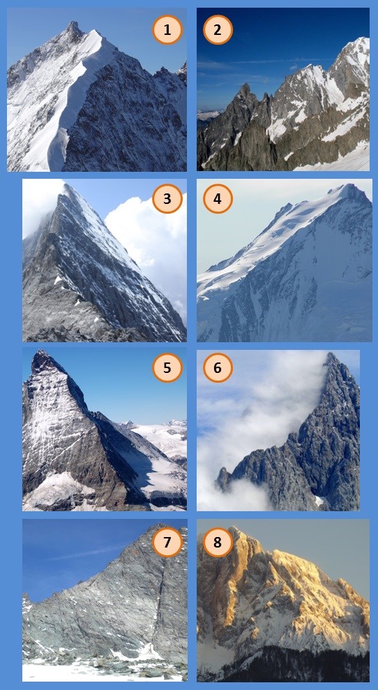 Bekannte Gebirgsgrate in den Alpen