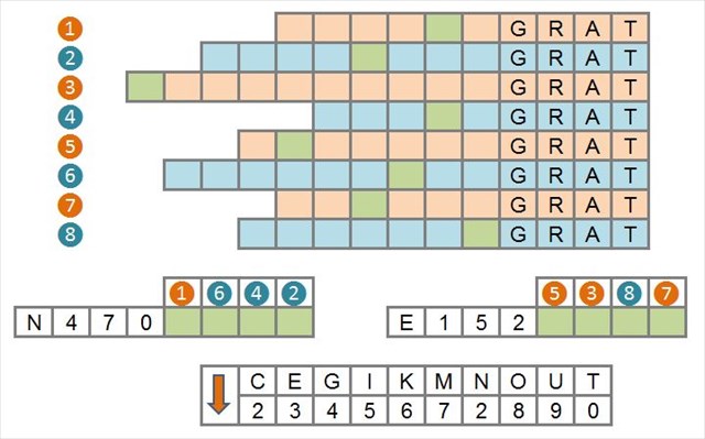 Anschließend übertragt ihr die Inhalte der grünen Felder mit der Übersetzungstabelle in die N/E-Koordinatenfelder.