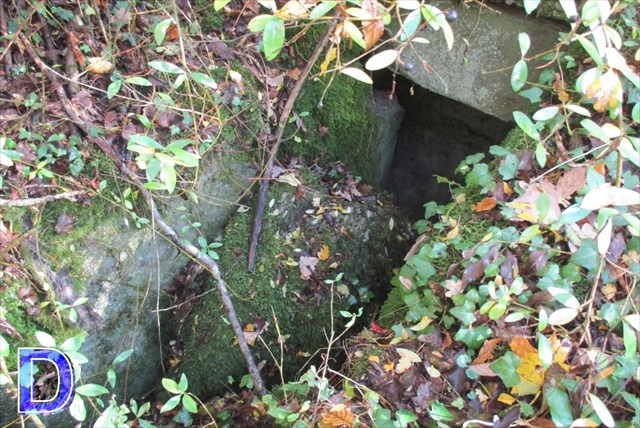 Foto D: Bunker für Infanteriewaffe. Die Schießscharte ist auf Bantzenheim gerichtet. Der Schießraum ist zerstört worden, sowie ein Teil vom Zugangskorridor.