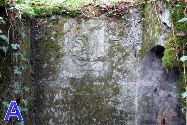 Foto A: Bunker für Infanteriewaffe. Dieser Stützpunkt überwacht die nahe Kreuzung, genannt Radbrunnen. ein Wappen vom 2.Jägerbataillon ziert den Eingang.