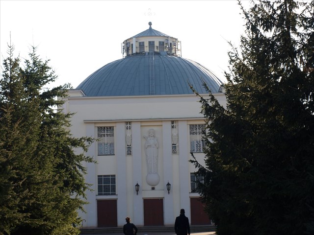 The church dome is supported by 16 concrete pillars with Doric capitals. Sixteen pilasters run from the pillars up to a lantern, with windows in their elliptic recesses. The church’s inner dimensions are as follows: diameter of the rotunda: 30 m, height to the lantern: 22 m, diameter of the lantern: 6 m.