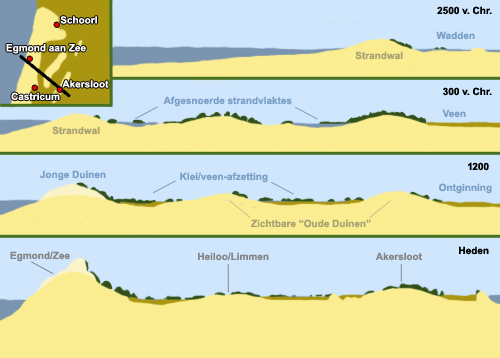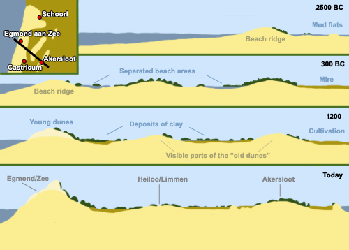 Querschnitt zur Entwicklung der Dünen zwischen Egmond aan Zee und Akersloot