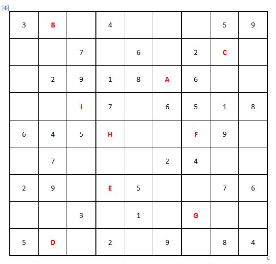 1) Résoudre le SUDOKU ci dessous en remplissant toutes les cases afin de découvrir la valeur numérique de chaque lettre en Rouge.