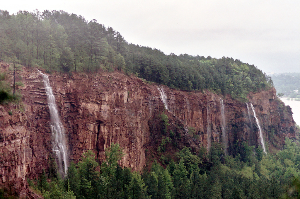 If you venture to the top side of the bluff you can visit Emerald Park. Emerald Park has some great trails and some of the most incredible scenery Arkansas has to offer. If you visit the bluff after a good rain you will likely see 4 or 5 waterfalls.