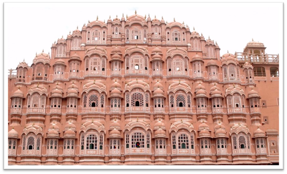 P – Hawa Mahal: Hawa Mahal renomeado de “Palácio dos ventos” é uma das mais proeminentes atrações turísticas de Jaipur. Localizado no coração de Jaipur, este palácio de cinco andares foi construído em 1799 pelo marajá Maharaja Sawai Pratap Singh que pertencia à dinastia Kachhwaha Rajput, e desenhado por Lal Chand Ustad com a forma da coroa de Krishna, um deus hindu. Os nomes dos cinco andares são: Sharad Mandir (primeiro andar), Ratan Mandir (segundo andar), Vichitra Mandir (terceiro andar), Prakash Mandir (quarto andar), e Hawa Mandir (quinto andar). Durante aquela época, as mulheres da realeza Rajput não apareciam em público ou em frente de estranhos, e assim o marajá construiu este palácio para que as mulheres do seu harém pudessem observar a vida e o que se passava na cidade.