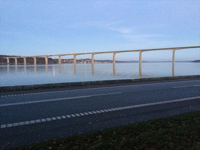Nyd udsigten mod Vejlefjordbroen, hvor du herfra kan se N (lige) bropiller.
