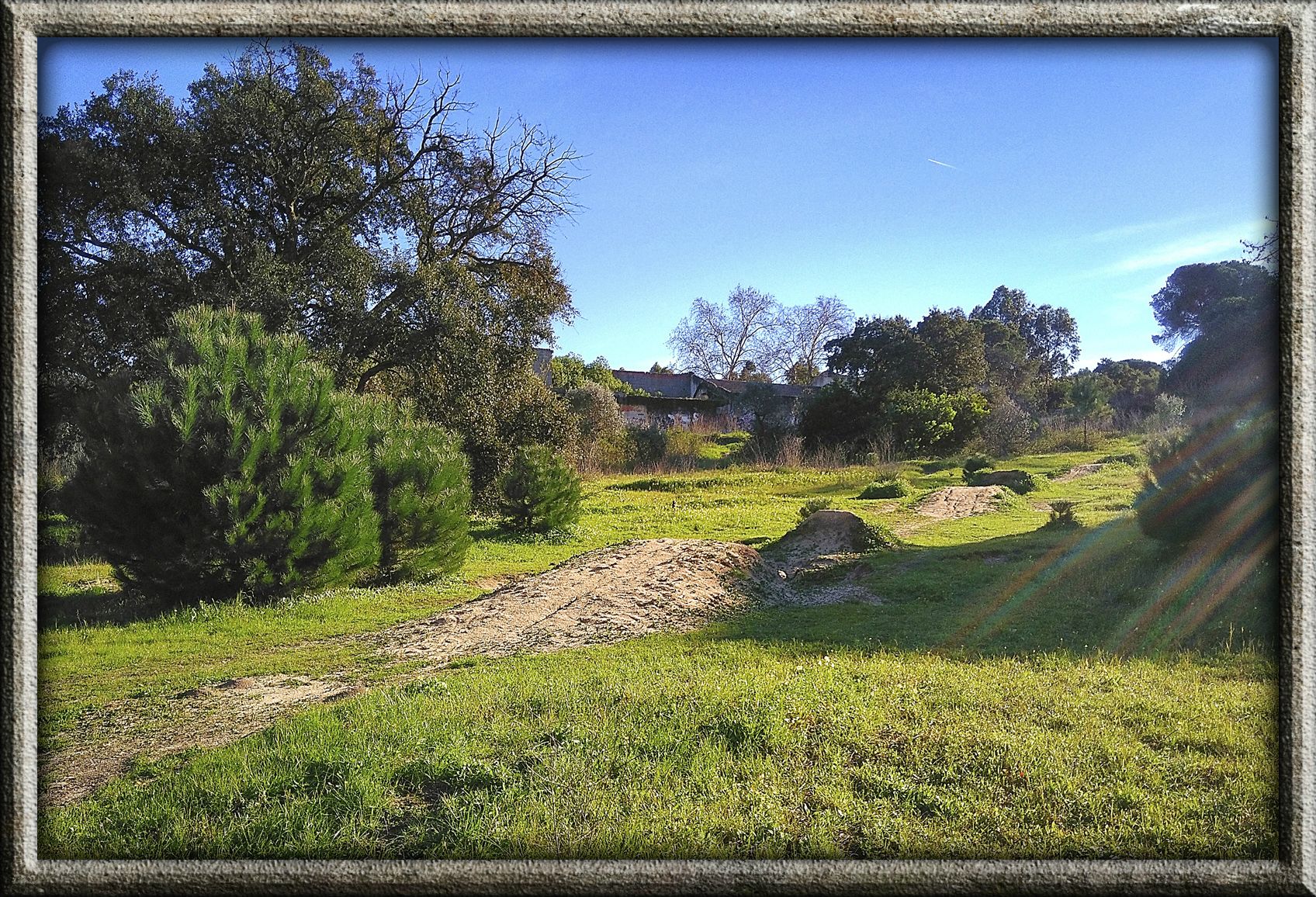 Esta cache vai-vos dar a conhecer onde outrora fora o pomar da Quinta dos Anjos e onde hoje existe um pequeno montado que inclui trilhos e saltos para andar de bicicleta nas modalidades de enduro ou BTT (o local é também conhecido como KBP ou Kintal Bike Park por alguns que ali andam).