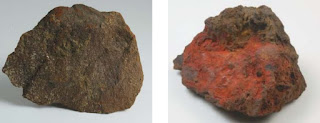 Asimismo, las partículas de hierro disueltas en forma de sales comenzaron a circular por las grietas que se producían en esos estratos y reaccionaron con el carbonato cálcico de la caliza, dando lugar al primer mineral de hierro: el carbonato férrico o siderita.