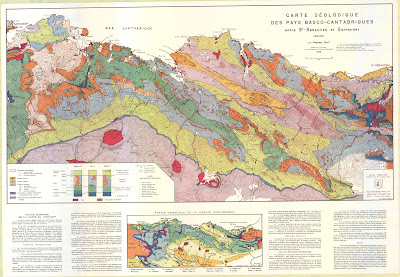 Con el movimiento pirenaico, primera fase de la orogenia alpina, hace aproximadamente 50 millones de años, todos estos materiales comenzaron a elevarse desde el fondo del mar y dieron origen a la cordillera Cantábrica, Pirineos y Alpes. Los estratos más blandos se plegaron y los más duros se fracturaron dando lugar a numerosas fallas que siguen la dirección de estos montes, es decir, noroeste-sureste, al igual que los filones de hierro.