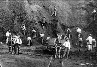 Aunque el trabajo minero en esta zona se realizaba generalmente en superficie, hubo también ocasiones en las que se trabajó en galerías. El trabajo de las minas se ejecutaba básicamente con la fuerza humana y un mínimo de mecanización. El obrero arrancaba el mineral con la ayuda de la azada, cargándolo luego con cestos en vagones. El medio de transporte utilizado variaba según la mina. Quizás el cambio más significativo, aunque puede parecer simple, fue la sustitución del cesto por la pala y la utilización del camión Dumper en lugar de la anterior tracción animal (el caballo). El trabajo en galerías era poco frecuente. Este se realizaba pos pisos o pasillos excavados de forma superpuesta comunicados por torbas o huecos por donde se cargaban los vagones de los niveles superiores a los inferiores.