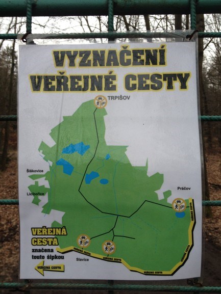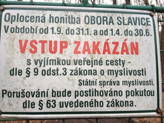 Vstup do obory je povolen po vyznačené veřejné cestě, viz foto informační cedule