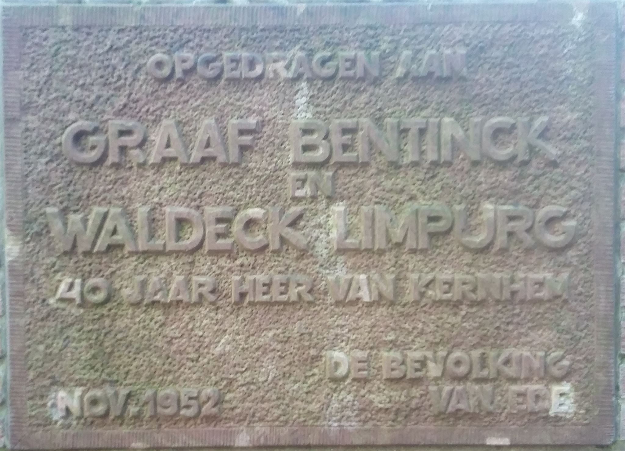 Op 3 november (Sint Hubertusdag) 1952 werd aan graaf W.F.C.H. Bentinck een bank aangeboden bij zijn veertig jarig jubileum als heer van Kernhem. Dit als dank van de edele burgerij omdat de graaf dit uitgestrekte gebied jarenlang voor iedereen vrij toegankelijk open stelde. Het was toegestaan om te jagen en men mocht er bijvoorbeeld altijd bosbessen plukken.