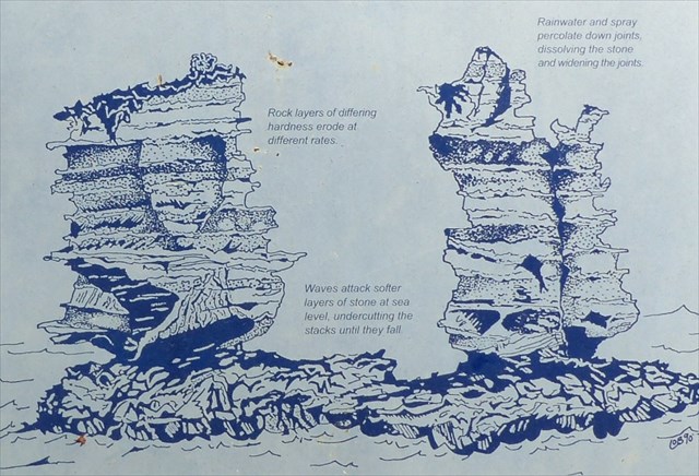 The promontory on this waypoint has not been subject to this seepage, so the limestone is tougher and more able to withstand the battering of storm-whipped waves.