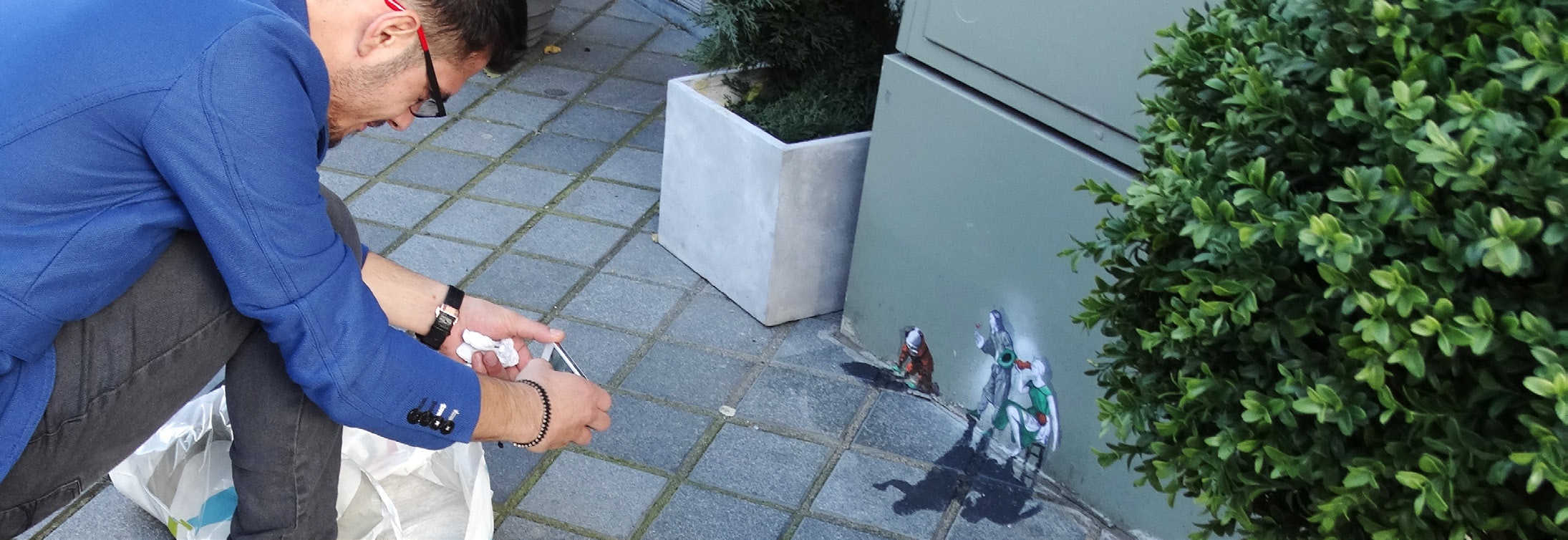 In totaal zijn er via onderstaande route 20 paste-up scènes te vinden. Wij laten je één locatie zien, de rest moet je zelf zoeken..