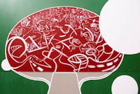 Newton schilderde tijdens Cultura Nova zijn ontwerp voor een cd-box van de muziekgroep Sweet Barbarians. Welke muziek de dertig leden tellende groep Sweet Barbarians maakt? Een mix van rock en pop, zegt Newton, waarna hij droogjes meedeelt dat de groep alleen in zijn hoofd bestaat. Alleen de kunst die hij eromheen maakt, is echt.