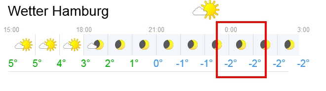zwischen 00:00 und 00:30 Uhr