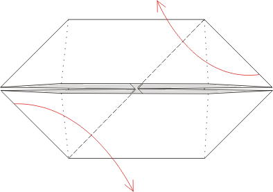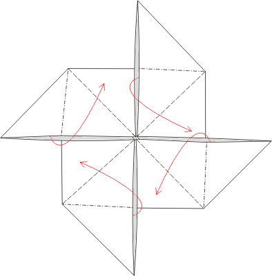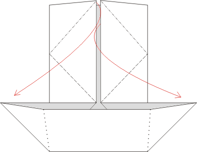 Przerywana linia na rysunku to linie gięcia do wewnątrz. Czerwone strzałki pokazują ich kierunek.