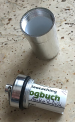 Vor dem Verschließen der Dose bitte das Logbuch zusammenrollen und in den Deckel stecken. Sonst läßt sich die Dose nicht zuschrauben!