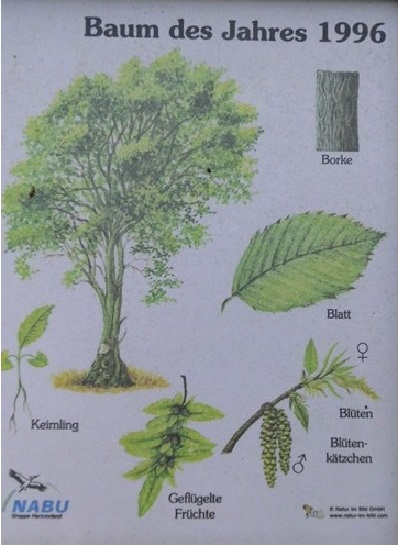 Die Hainbuche ist zwar ein Baum, der im Hain wächst, aber sie ist keine Buche. Denn sie gehört einer ganz anderen Familie an, den aaa. Das erkennt man sofort an den Blättern. Die sind im Gegensatz zur Buche am Rand doppelt gesägt und fühlen sich älter, härter an.