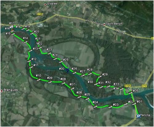 Si le fleuve est calme vous pourrez apercevoir quelques bancs de sable, apprécier le parcours vert profond des lônes, nombreuses dans cette portion au parcours "en tresse" du fleuve. Vous découvrirez aussi un peu de l'histoire de ce fleuve, les bacs à traille utilisés jadis pour traverser. Chapelle, château, lavoir et four complètent le parcours.