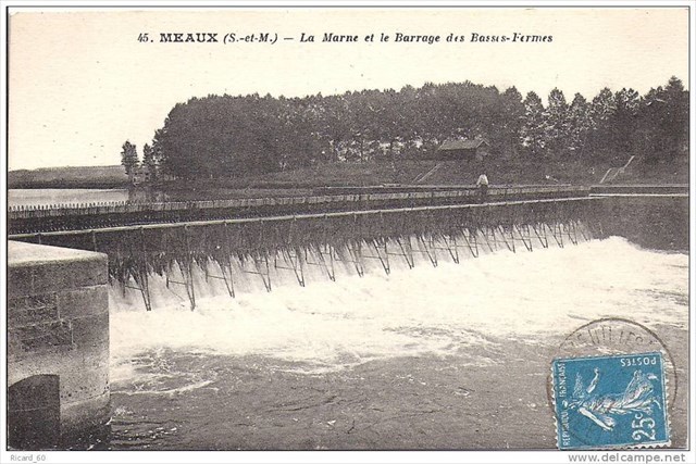 Avec la construction du barrage de Meaux en 1937 (celui-ci doit normalement être refait d'ici 2017 - affaire à suivre mais profitez-en pour faire la cache "ça (rou)coule à Meaux" avant son éventuel archivage) l'hydrologie de surface de la région a été fortement modifiée avec la fin du caractère alimentaire du canal du Grand-Morin (cf "les écluses meurent aussi #2) d'une part, le canal de Chalifert qui s'écoule désormais exclusivement que dans un seul sens d'autre part et la disparition de la chute d'eau au niveau du barrage des Basses Fermes sur la Marne qui rend inutile cet ouvrage et malheureusement son écluse.Ils seront tout deux démolis, détruits et oubliés.