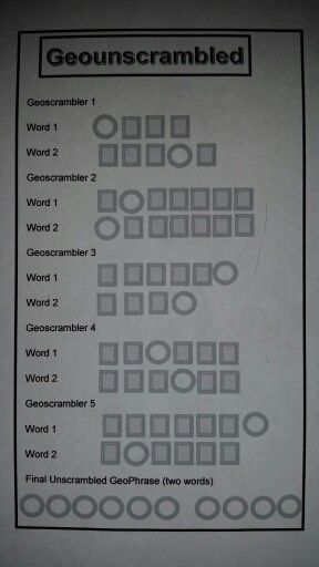Now you will have to plug in your geounscrambled words into the puzzle below. Each circled letter will be used to solve the final Geophrase.