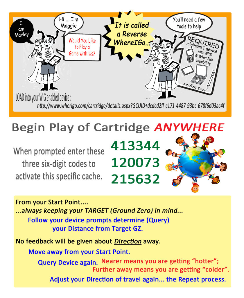 If this is the first time you are playing a Reverse WherIGo you may find the cache description graphics adequate to guide you. If you'd like a bit more "understanding" or instruction of the process then please refer to the tutorial in the gallery of this cache page.