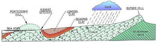 Geological Cross-Section from The Solent in the south, to Petersfield in the north
