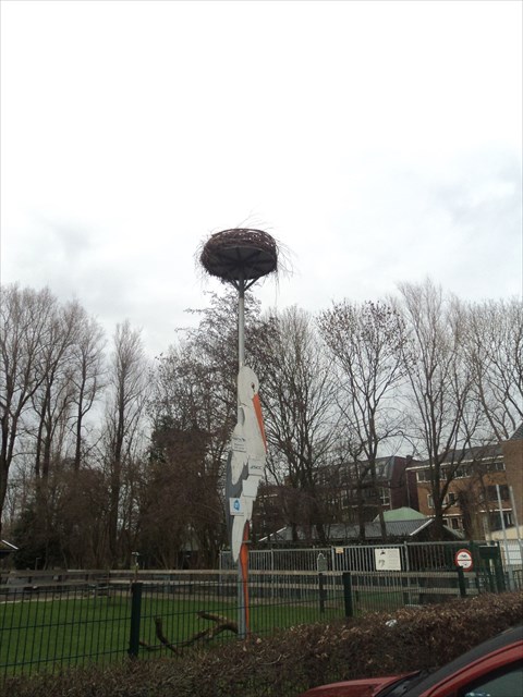 Foto 7 Waar staat dit ooievaarsnest?Staat dit nest op kinderboerderij de Oude zustertuin(4), het station (2) of op het raadhuisplein (5)?Het getal achter het goede antwoord is G.