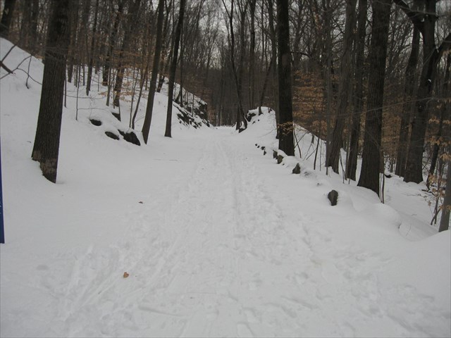 This cache is hidden along the Old RR Bed Trail. I recommend approaching this cache from the waypoint I have provided. Along the way to GZ, you will be walking on an elevated section of the trail. The Old Put once ran from Eastview, through a rock outcrop (where my Tarrytown Lakes Chasm cache is), across a trestle, then through a much larger rock cut, and made its way north to here. The trestle was later demolished and the Old Put was rerouted once again around the south shore of the Tarrytown Reservoir. The Rockefeller's later had the Old Put rerouted to where the NCT currently is.